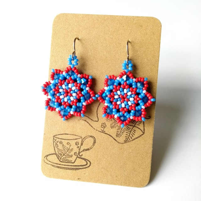 This pair features very pretty Preciosa 4mm crystal bicones in Capri blue - with a sparkly matte blue finish - plus seed beads in red, white and blue. Perfect for holidays and summer days - I think they also have a nautical vibe to them!
